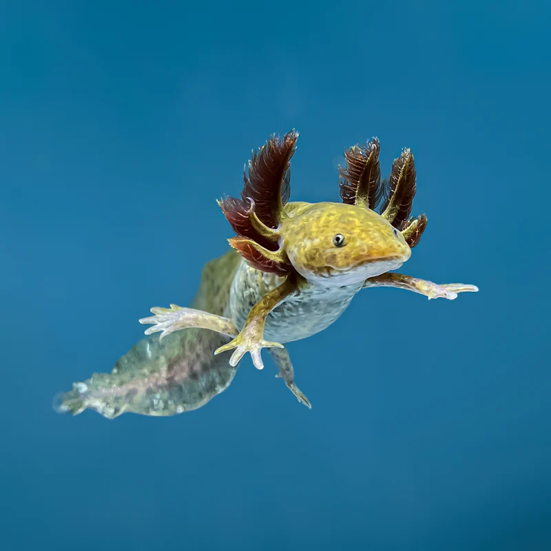 Copper axolotls are one of the more rare common morphs. They have brown/copper-colored bodies covered in both light spots, dark spots, and iridophores. Axolotls for Sale